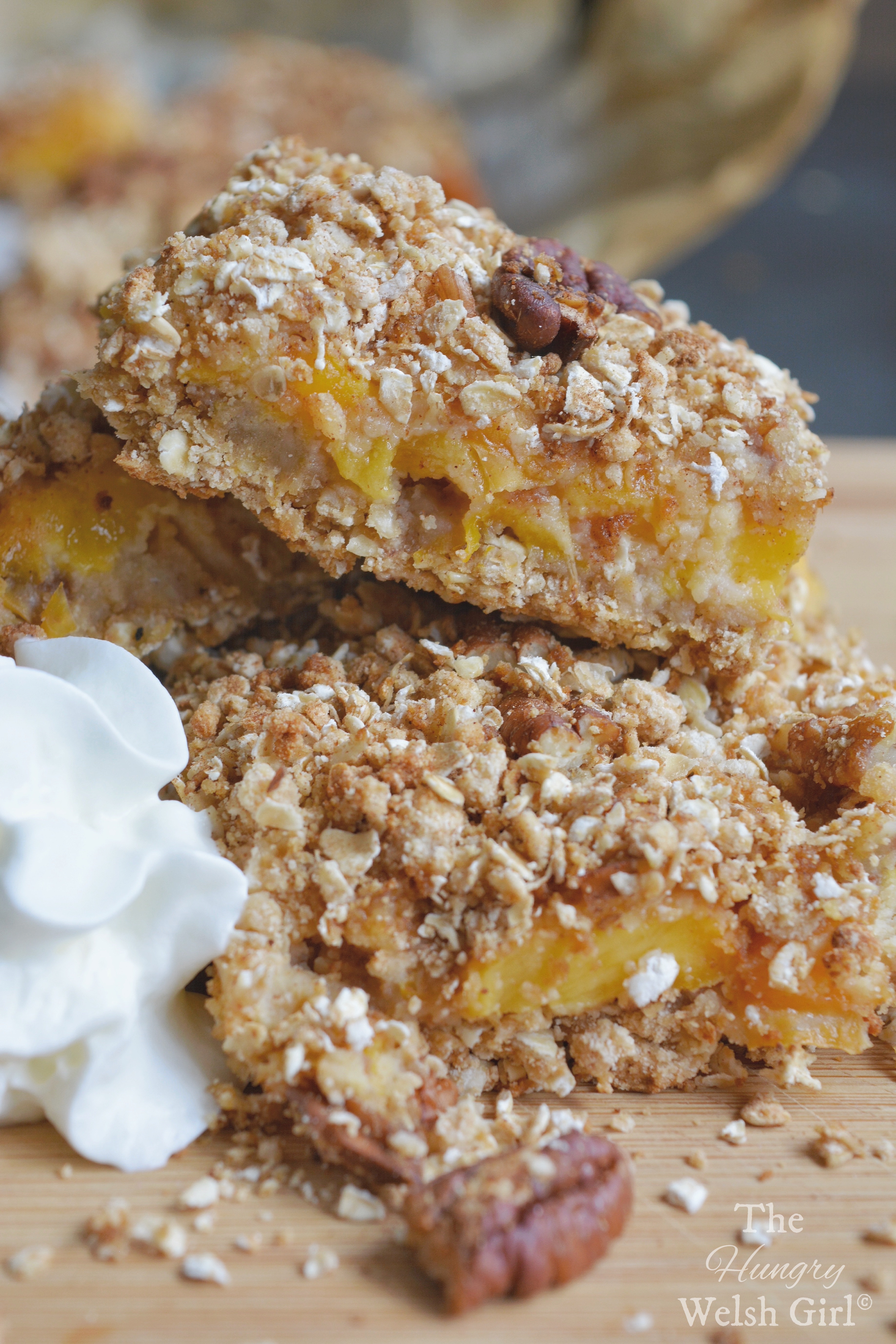- Leave the crumble to cool completely and pop into the fridge for a few hours before cutting into squares.